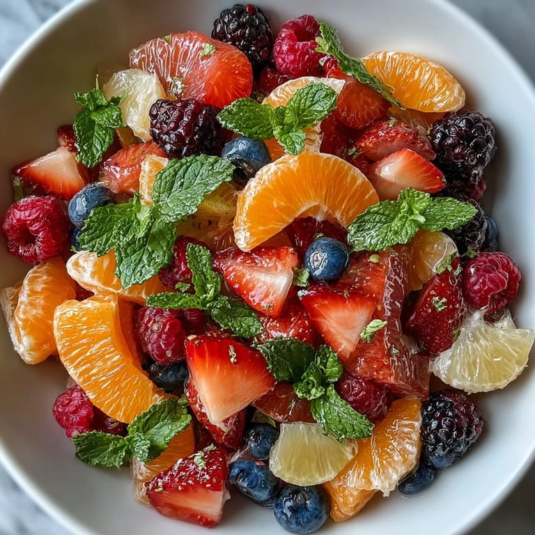 Merken Es war ein unerwarteter Besuch meiner Schwester an einem Frühlingssamstag, die mit leeren Händen ankam und fragte, ob ich etwas Leichtes zubereiten könnte. Ich öffnete meinen Kühlschrank und sah die bunten Beeren und strahlend gelben Orangen, die gerade auf dem Markt gekauft worden waren. In diesem Moment entstand diese Salatschüssel, nicht aus einem Rezept, sondern aus der Freude, etwas Einfaches und Schönes zusammenzustellen. Seitdem ist es mein Geh-zu-Gericht für jeden Brunch geworden.