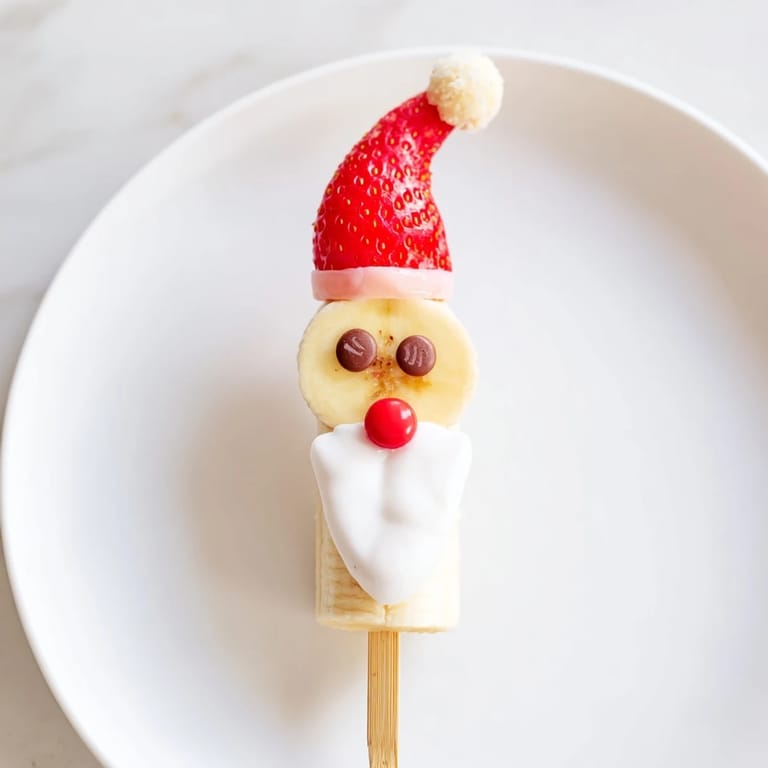 Merken Festliche und lustige Fruchtspieße mit Bananen, Erdbeeren und Marshmallows, perfekt für Feiertagsversammlungen oder einen gesunden, kinderfreundlichen Snack.