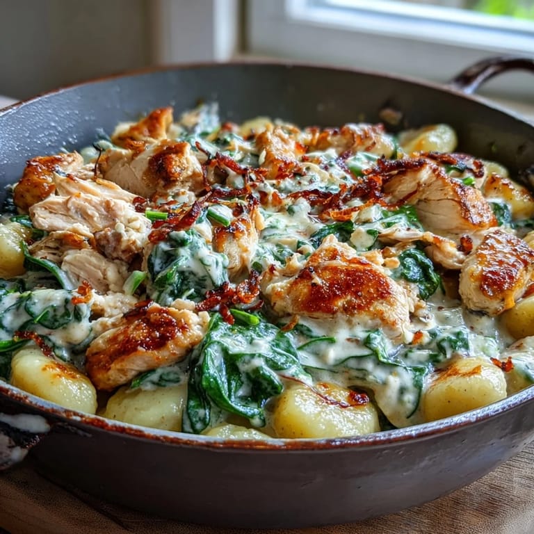 Merken Letzte Woche stand ich in meiner Küche und starrte auf eine Packung Gnocchi im Regal, als mir plötzlich klar wurde, dass ich ein Restaurant-Gericht in Minutenschnelle zaubern konnte. Das cremige Spinat und Parmesan Gnocchi mit Hähnchen wurde geboren aus reiner Ungeduld, etwas Köstliches zu essen, ohne stundenlang in der Küche zu stehen. Ein Freund probierte es und sagte sofort, das hätte er nie erwartet, so schnell so lecker zu kochen. Seitdem ist dieses Gericht mein stilles Geheimnis, wenn ich beeindrucken möchte, ohne große Umstände zu machen.
