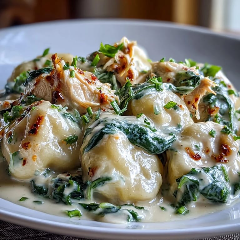 Merken Tender potato gnocchi and juicy shredded chicken are enveloped in a rich garlic Parmesan cream sauce with fresh spinach, making for a comforting and satisfying meal perfect for any night of the week. This Italian-inspired dish brings together simple ingredients for a result that feels truly indulgent.