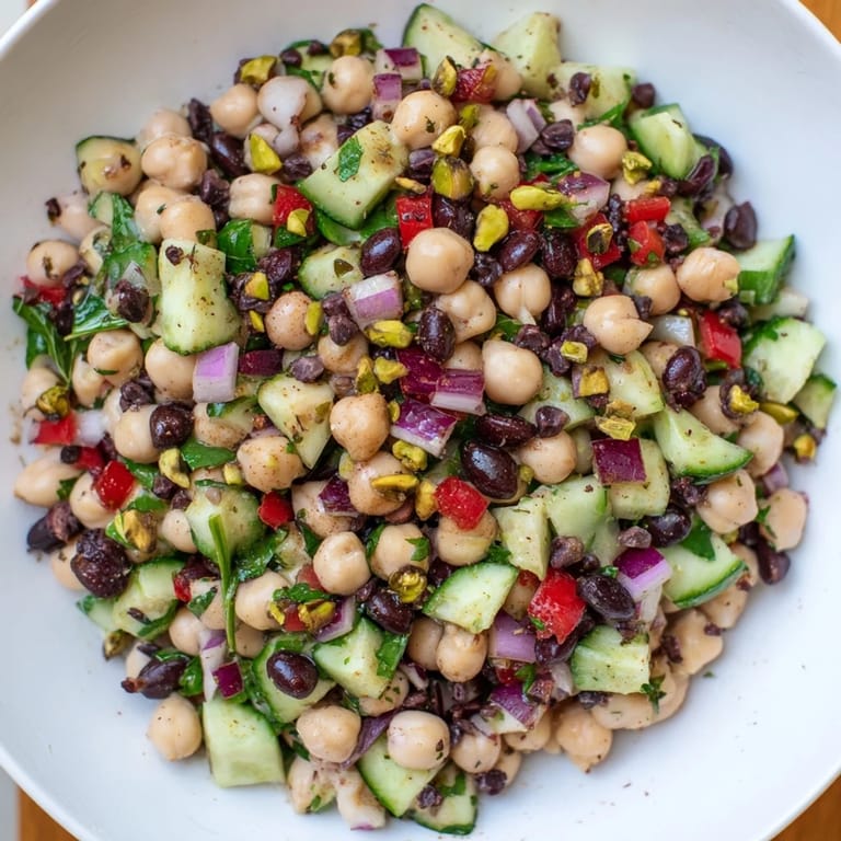Merken Ich habe diesen Salat zum ersten Mal an einem warmen Augustabend zubereitet, als ich überraschend Besuch bekam. Im Kühlschrank lagen nur drei Sorten Bohnen und etwas Gemüse, aber ich erinnerte mich an die Pistazien aus Dubai, die mir eine Freundin mitgebracht hatte. Dann fiel mir ein kleines Glas Kakaonibs in die Hände, und plötzlich hatte ich eine Idee. Was zunächst wie eine wilde Kombination klang, wurde zu einem der spannendsten Salate, die ich je gemacht habe. Die Gäste waren verwirrt, dann begeistert.