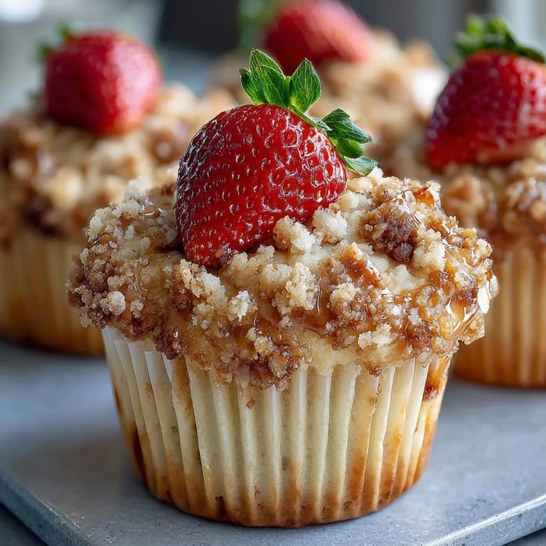This recipe is wonderfully adaptable to your preferences and what's in season. Substitute blueberries or raspberries for strawberries if desired—both work beautifully with the crumble topping. For extra flavor, add ½ tsp lemon zest to the batter, which brightens the berry flavor and adds a subtle citrus note. You can also experiment with the crumble topping by adding chopped nuts like almonds or pecans for extra crunch, or swap the cinnamon for cardamom for a unique twist. If you prefer sweeter muffins, increase the sugar in the batter by 2 tablespoons.