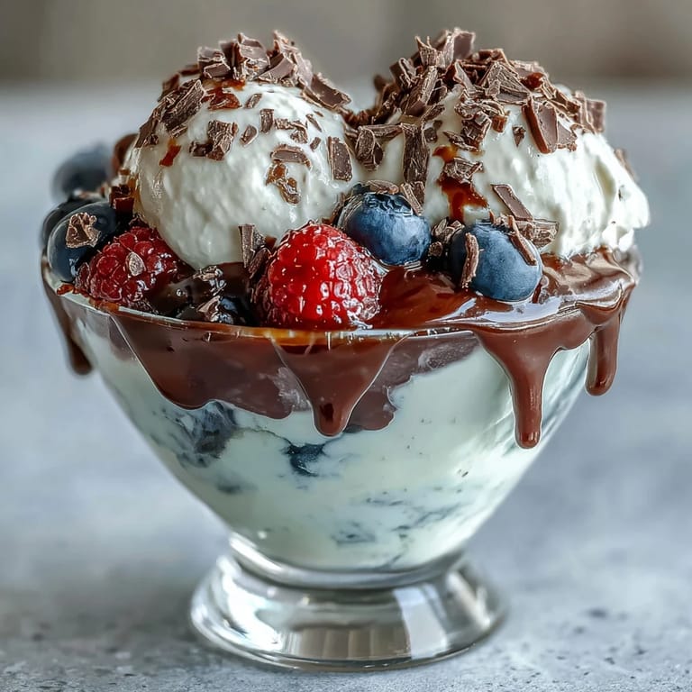 Merken Last summer, I was frantically searching for something to serve at a dinner party when my friend casually mentioned she'd thrown together yogurt, berries, and chocolate shavings for her kids' snack. That simple comment stuck with me, and I realized how elegant simplicity could be when each ingredient actually mattered. The first time I made these sundaes properly, whipping the yogurt until it was impossibly fluffy, I understood why she'd been so casual about it—because there's almost nothing that can go wrong, yet everything tastes deliberately crafted.
