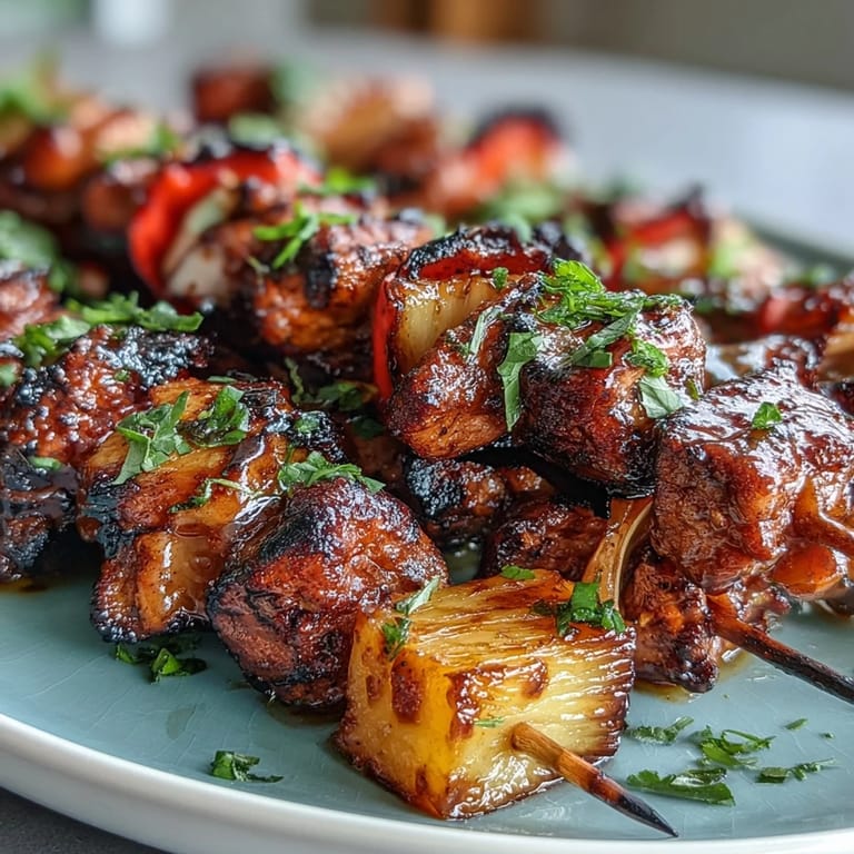 I made these for a small gathering last summer, and something unexpected happened—everyone went quiet for that first bite. Not awkward quiet, but the kind where people actually taste what's in front of them. My neighbor, who never eats spicy food, reached for a second skewer and asked about the heat level. By the time we'd finished, we were all comparing notes on the caramelized pineapple, the tender chicken, the way those charred edges caught just enough smoke. That meal turned into a conversation about travel and food memories that lasted well past sunset.