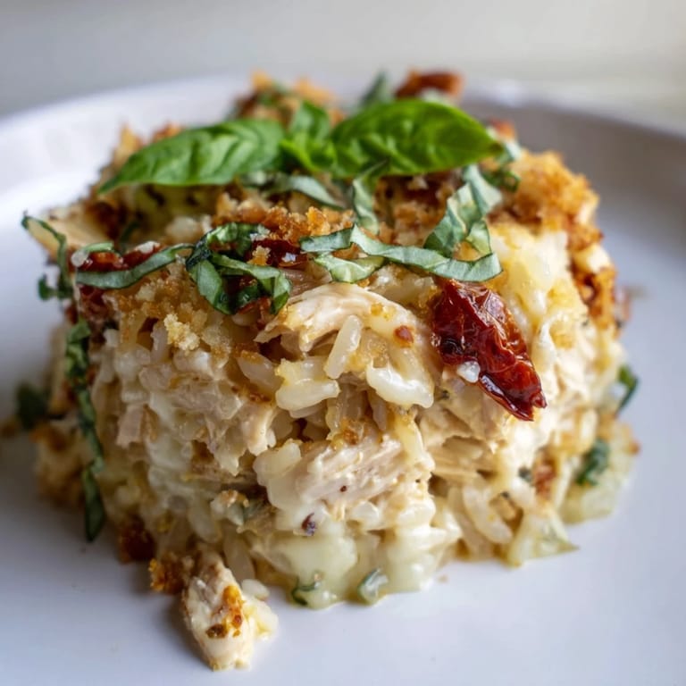 Merken Ich habe diese kleinen Schätze an einem Sonntagabend erfunden, als ich Reste von cremigem Marry-Me-Hähnchen im Kühlschrank hatte und gleichzeitig von Sushi-Bake-Videos auf meinem Handy besessen war. Meine Küche roch nach Knoblauch und Parmesan, und ich dachte mir: Warum nicht beides kombinieren? Ich hatte eine Muffinform zur Hand, etwas gekochtes Orzo und den verrückten Drang zu experimentieren. Das Ergebnis war so gut, dass mein Partner drei davon verschlang, bevor sie überhaupt richtig abgekühlt waren. Seitdem sind sie mein Geheimrezept für spontane Gäste.