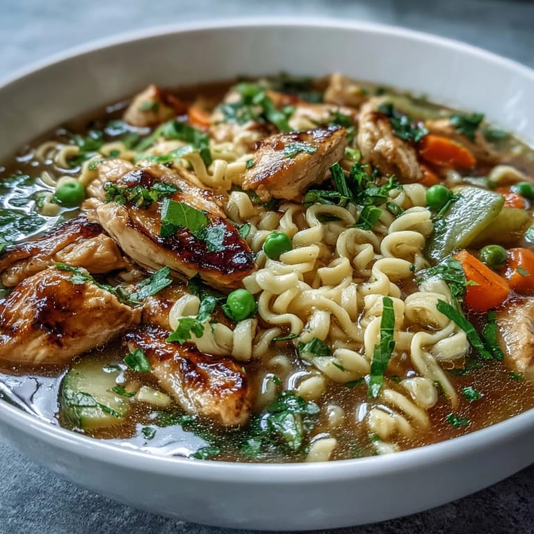 Merken An unexpected weeknight chaos led me to this soup—my daughter came home starving earlier than usual, the fridge looked sparse, and I had exactly the ingredients for something that felt both warming and effortless. What started as improvisation became the recipe I reach for whenever life feels a bit hectic and comfort food feels essential. This one-pot chicken noodle soup has quietly become the kind of dish that makes everyone pause mid-conversation to ask for seconds.