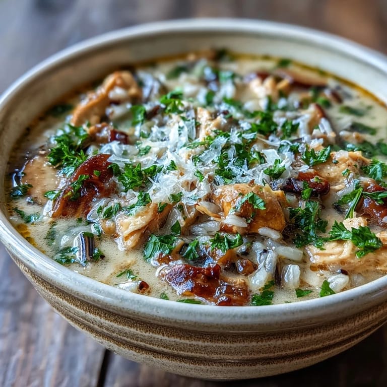 Merken Ich kann mich noch genau an den ersten Schneesturm des letzten Winters erinnern, als ich diesen Parmesan-Pilz-Hühnchen-Wildreis-Eintopf entwickelt habe. Draußen wirbelten die Flocken wie verrückt, während ich in der Küche stand und nach etwas suchte, das von innen wärmen könnte. Die Kombination aus nussigem Wildreis, erdigen Pilzen und dem cremigen Parmesan entstand aus purer Improvisation. Als der Duft durch das Haus zog, wusste ich, dass ich etwas Besonderes gefunden hatte – eine Suppe, die nicht nur den Magen füllt, sondern auch die Seele streichelt.