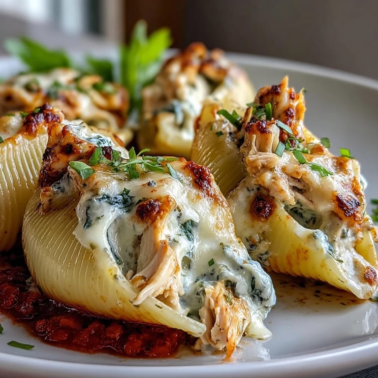 Merken My neighbor knocked on the door one Tuesday evening with a container of homemade pesto, apologizing for the basil overflow from her garden. That night, I had chicken in the fridge and jumbo shells in the pantry, so I started experimenting with a lighter filling using Greek yogurt instead of heavy cream. The result was so unexpectedly good that I've made it countless times since, each batch somehow easier than the last.