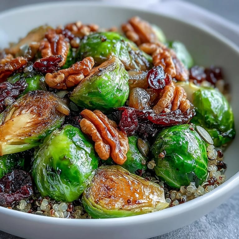 Merken Mein Kühlschrank war fast leer, aber ich hatte ein Pfund Rosenkohl, das darauf wartete, gerettet zu werden. Ich warf ihn in den Ofen, und während er knusprig wurde, zog dieser unglaubliche, karamellisierte Duft durch die Küche—plötzlich war das, was wie ein schnelles Mittagessen aussah, zu etwas viel Befriedigenderem geworden. Diese Schüssel wurde mein Liebling, weil sie zeigt, wie einfache Zutaten zusammen etwas Besonderes schaffen können.