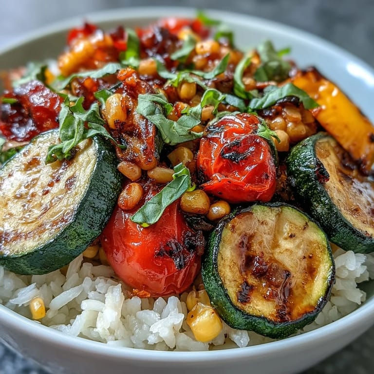 Merken An afternoon at the farmers market last July, I stood mesmerized by a pyramid of heirloom tomatoes still warm from the sun, their skins splitting slightly with juice. The vendor handed me a sample, and I bit into it standing right there—that burst of sweetness made me decide right then that I needed to build an entire meal around that moment. This summer vegetable bowl became my answer, a way to celebrate each ingredient at its absolute peak without overthinking it.