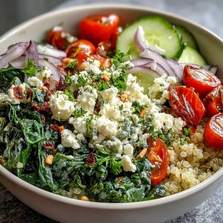 Merken Eines Mittags öffnete ich den Kühlschrank und fand nur Spinat, Feta und ein wenig Getreide vor. Statt zu verzweifeln, schnitt ich einfach alles, was noch da war, und schichtete es übereinander. Das Ergebnis war so köstlich und belebend, dass ich es seither ständig mache, wenn ich etwas Schnelles und Sättigendes brauche. Diese Schüssel wurde zu meinem treuer Begleiter an stressigen Arbeitstagen.