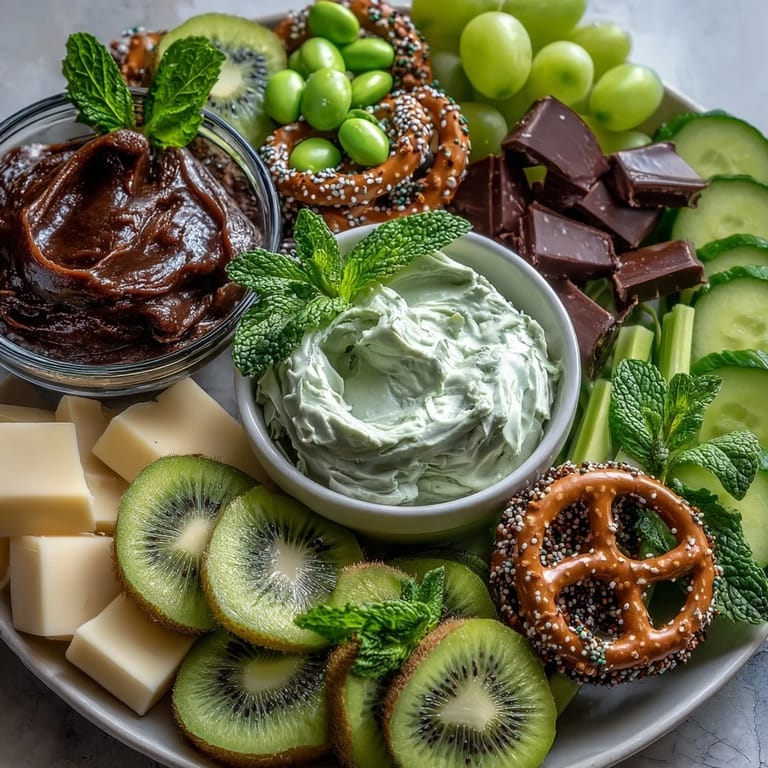Merken My kitchen turned into mission control last St. Patrick's Day when my sister texted asking if I could throw together something green for her impromptu gathering—and honestly, that's when the magic of a snack board clicked for me. No cooking required, just pure creativity with colors and textures spread across a wooden platter. What started as a quick solution became the centerpiece everyone kept circling back to, each person discovering their own favorite combination of sweet, salty, and fresh. It's one of those dishes that feels effortless to make but looks like you've been planning it for weeks.