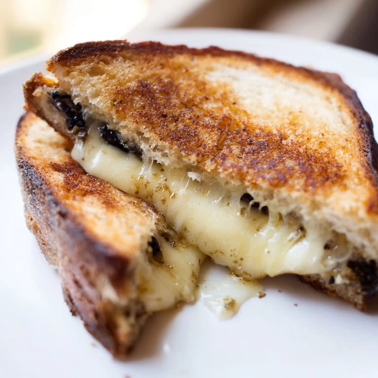 Du kannst das Sandwich ganz einfach aufpeppen, indem du eine Handvoll sautierte Champignons oder karamellisierte Zwiebeln zwischen den Käse legst. Beide bringen eine süßliche Tiefe mit, die den Trüffel wunderbar ergänzt. Ich habe auch schon dünn geschnittene Birne ausprobiert, was überraschend gut funktioniert und eine fruchtige Note hinzufügt. Manchmal streue ich auch frischen Thymian über den Käse, bevor ich das Sandwich schließe. Lass deiner Fantasie freien Lauf, aber übertreibe es nicht, der Trüffel soll im Mittelpunkt bleiben.