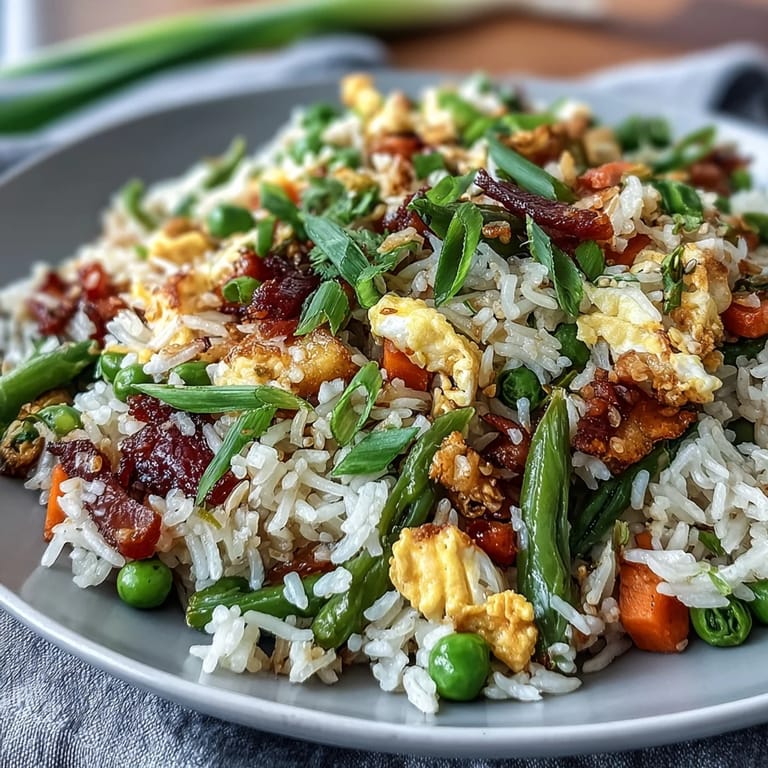 Merken Eines Abends, als ich eine Schublade voller Gemüsereste hatte und nur noch kalten Reis übrig war, entstand dieses Gericht aus reiner Pragmatik – und es wurde zum Favoriten meiner Familie. Das Wok-Geräusch, das Aroma von Knoblauch und Ingwer, die plötzliche Farbenexplosion, wenn alles zusammenkommt – es fühlte sich wie Zauberei an. Ich hatte nicht erwartet, dass etwas so Einfaches so befriedigend sein könnte. Seitdem mache ich absichtlich zu viel Reis, nur um diese Mahlzeit wieder kochen zu können.
